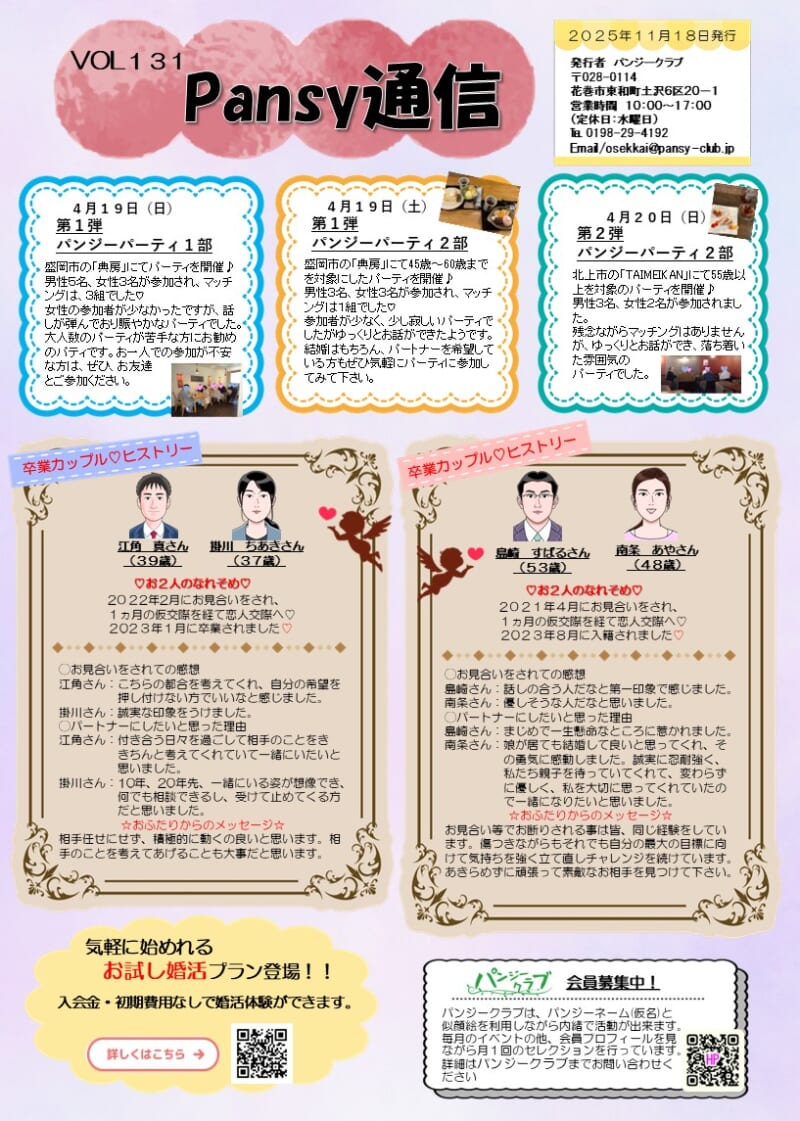 毎月、岩手県在住の方々がパンジークラブに登録しています。